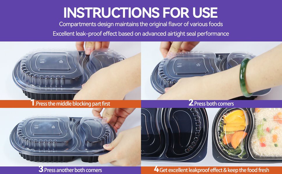 1. ہمارے ڈسپوزایبل لنچ باکسز کو شادیوں، اسکولوں، پارٹیوں، باہر جانے اور ریستوراں وغیرہ کے لیے جگہ بچانے کے لیے اسٹیک کیا جا سکتا ہے اور آپ کو ایک آسان تجربہ فراہم کیا جا سکتا ہے۔ جلدی سے ڈھکن بند کریں اور سلاد، برگر، کیک، چاول وغیرہ آسانی سے پیک کریں۔